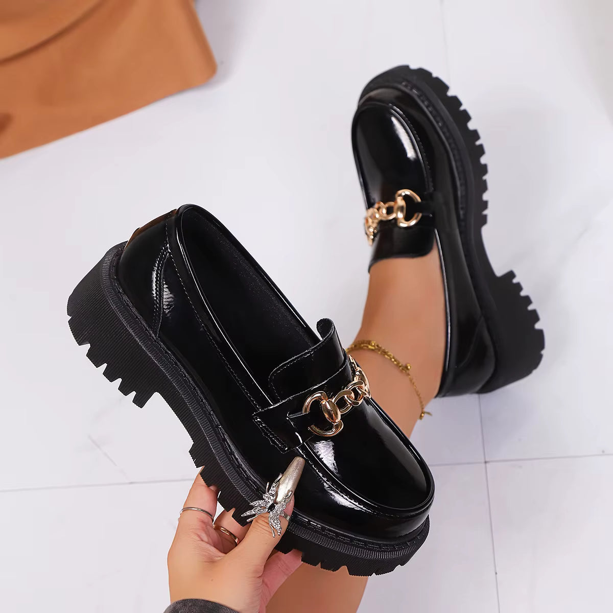 Forged with a heavy lug sole, this shoe delivers high-ground traction and a steady grip. The structured upper is built to hold its shape through constant movement. A interlocking metal chain sits across the top for a crisp, industrial finish.