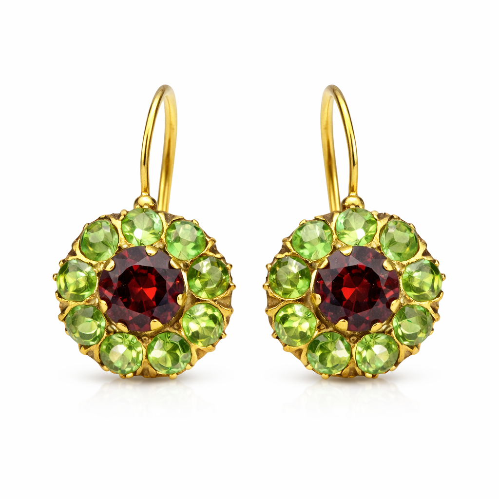 Chic Green and Red Crystal Round Earrings