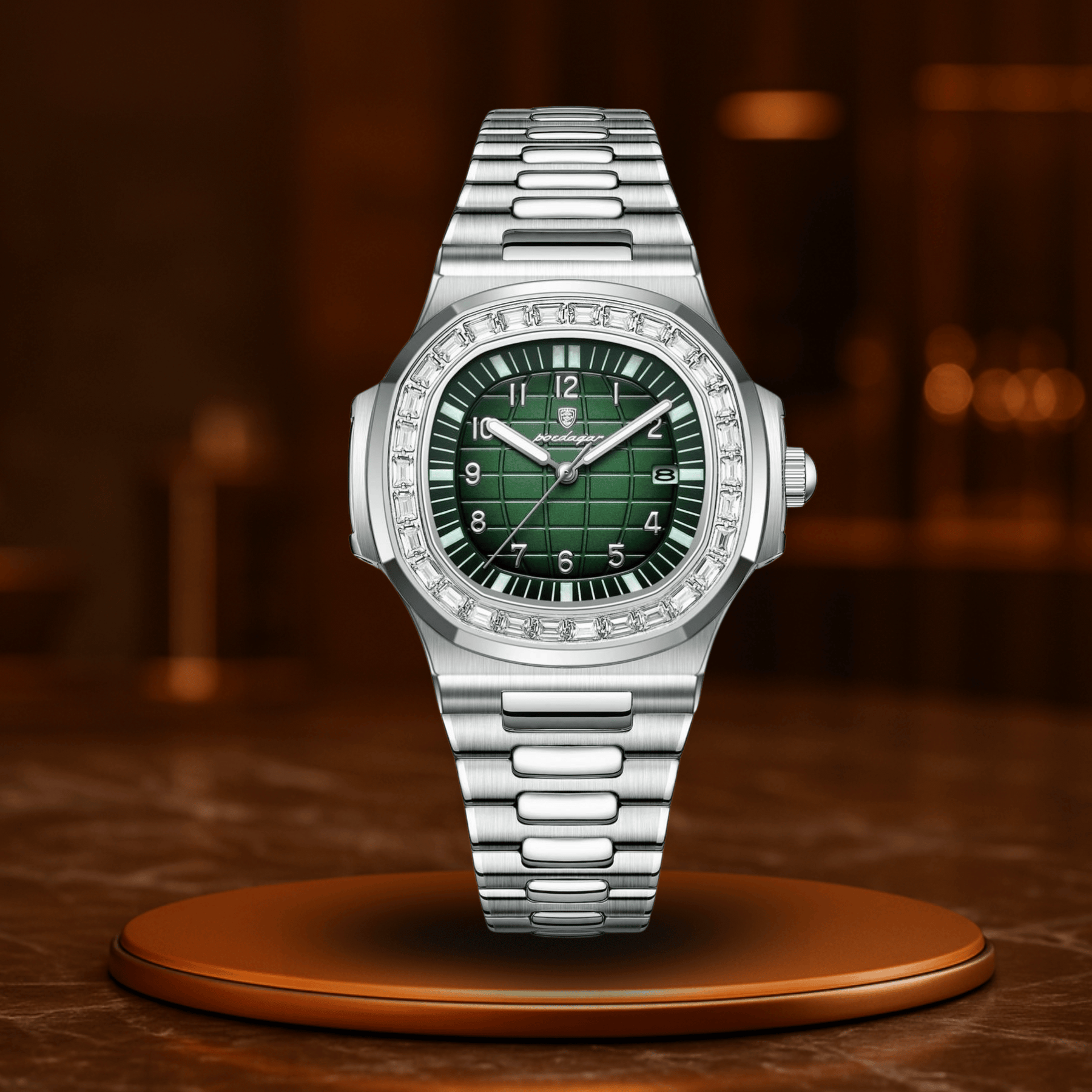 Dokładny mechanizm kwarcowy zapewnia perfect odmierzanie czasu, wyświetlacz daty pomaga w organizacji, a świecące wskazówki są gotowe, gdy światła gasną – ale twój czas trwa dalej.