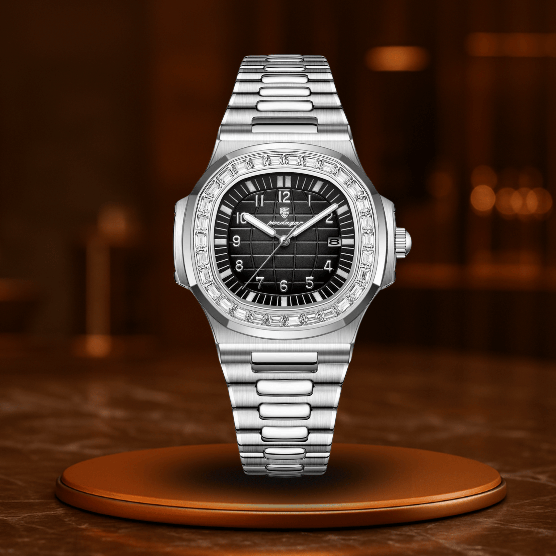 - Świecące wskazówki i wyświetlacz daty – dyskretna funkcjonalność