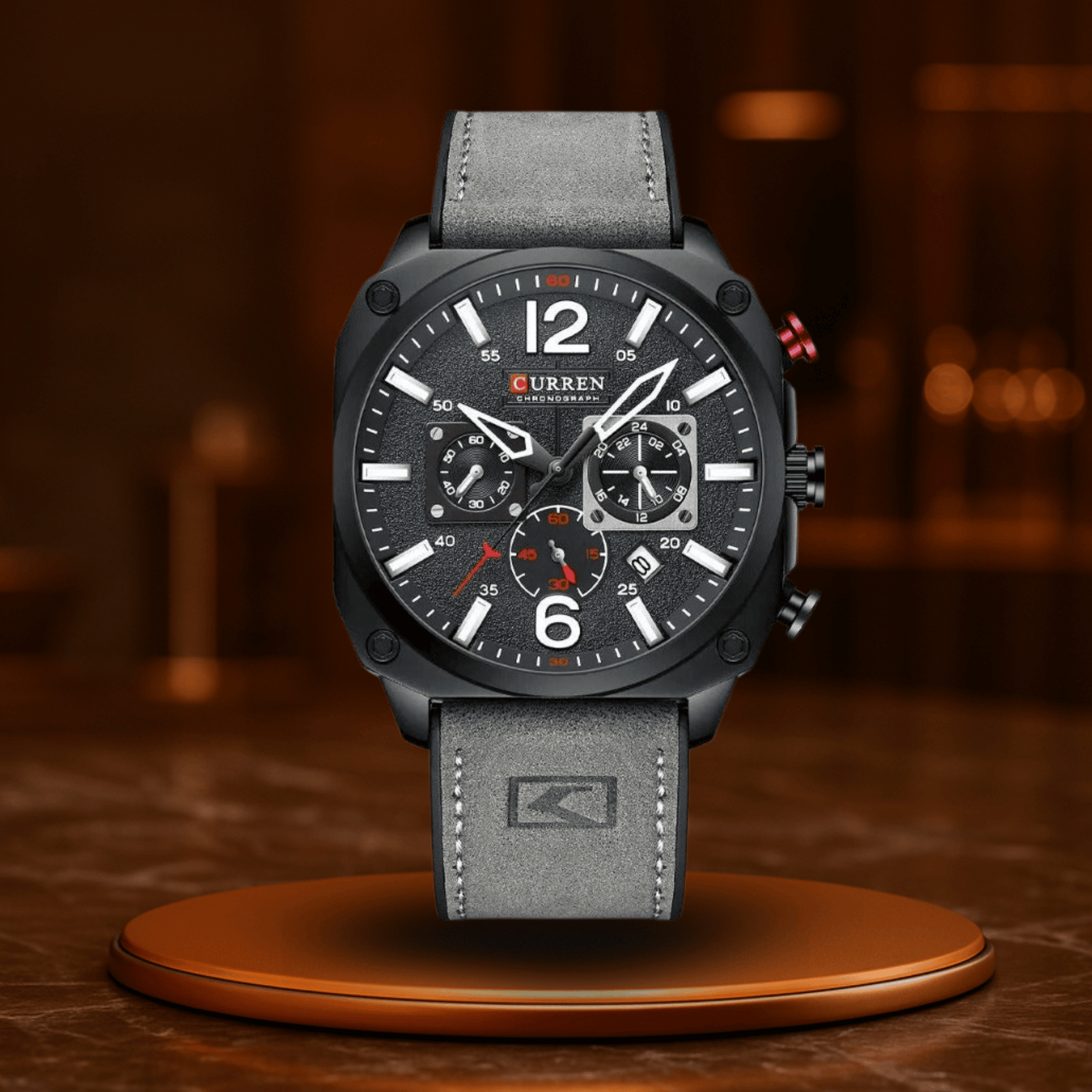 Sześć wskazówek i wyświetlacz kalendarza zapewniają nie tylko funkcjonalność techniczną, ale także wizualną ekspresyjność, która błyszczy zarówno w środowisku biznesowym, jak i podczas aktywności rekreacyjnych. Połączenie minimalistycznej tarczy z funkcjami chronografu stawia funkcję i formę na pierwszym planie.