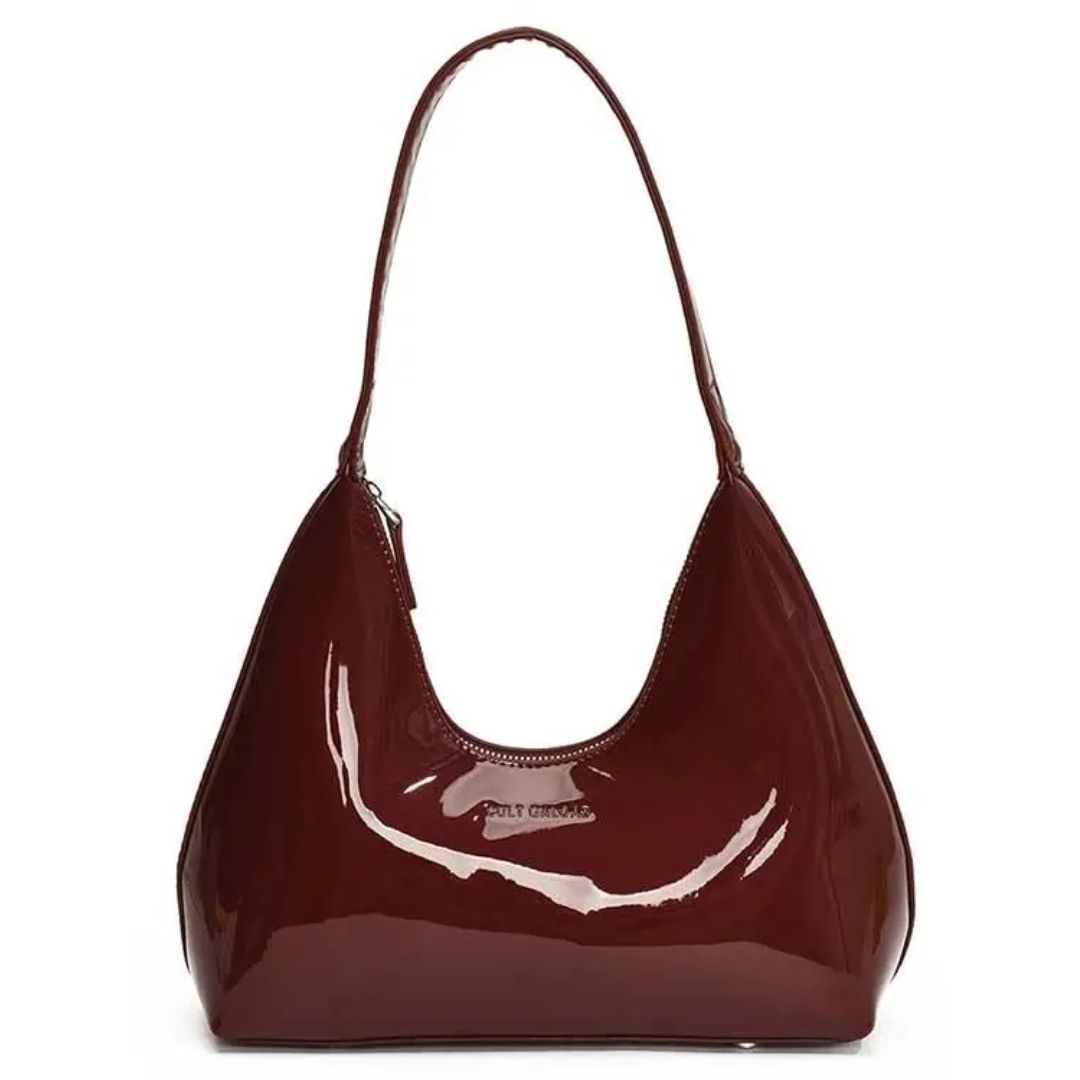 Uzupełnij swój styl w tym roku z Vera™ – błyszczącą, bordową torebką na ramię w lakierowanym wykończeniu, która łączy nowoczesną elegancję z funkcjonalnością. Jej unikalny, lśniący design przyciąga uwagę, a praktyczny rozmiar sprawia, że idealnie sprawdzi się zarówno na co dzień, jak i podczas wieczornych wyjść.